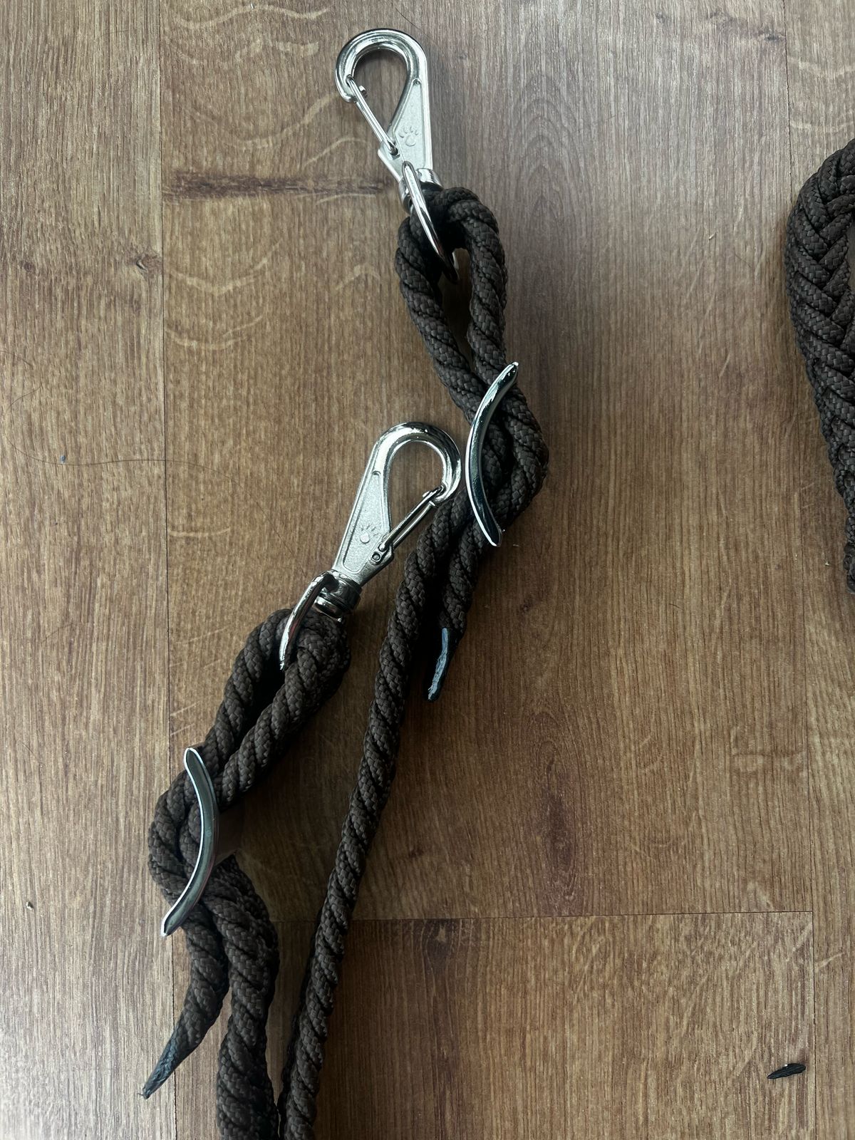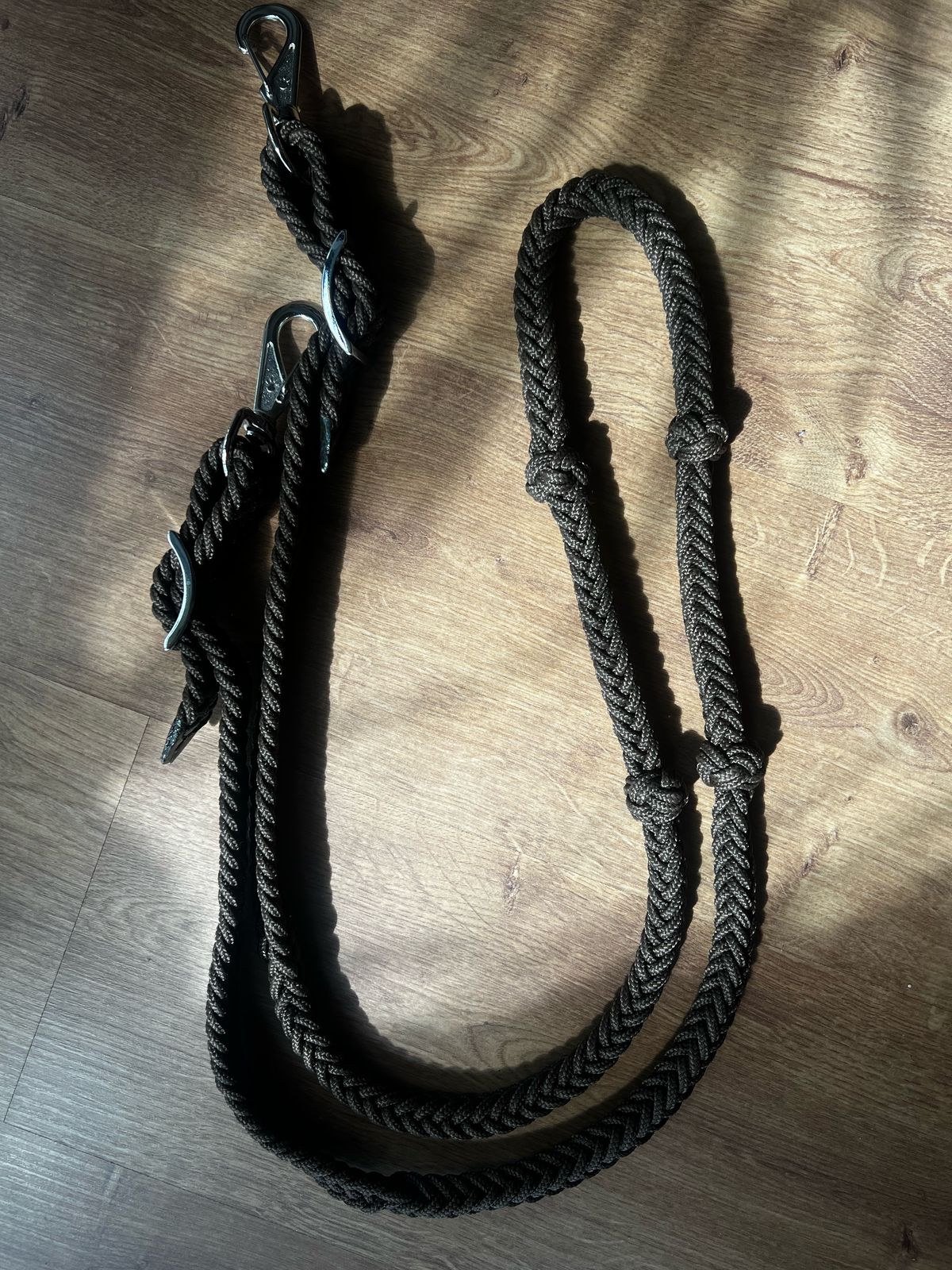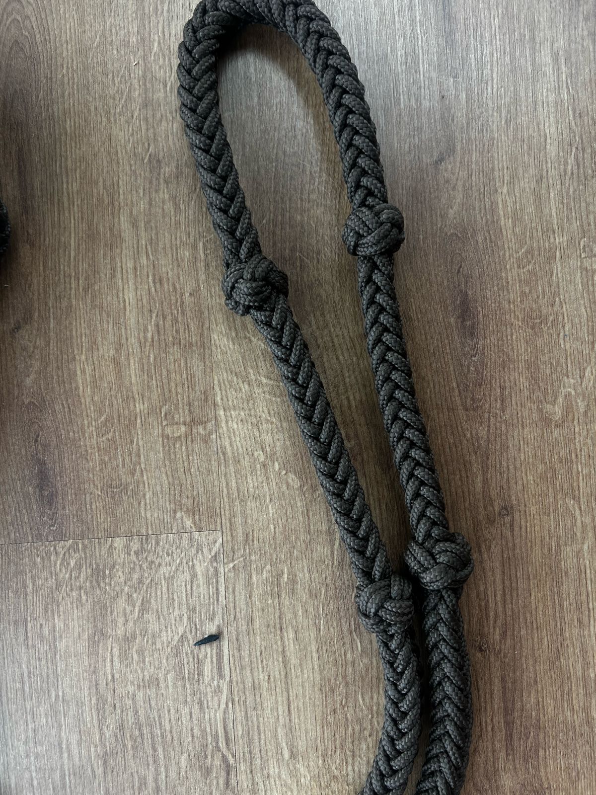 Rédea trançada artesanal para prova de tambor, feita com corda naval de polipropileno na cor preta.